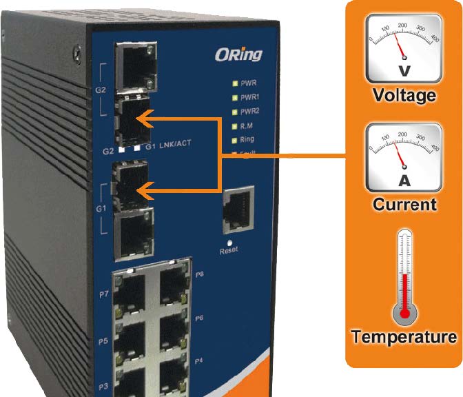 - Warning / Monitoring System: Relay output for fault event alarming Syslog server / client to record and view events, Include SMTP for event warning notification via email, Event selection support