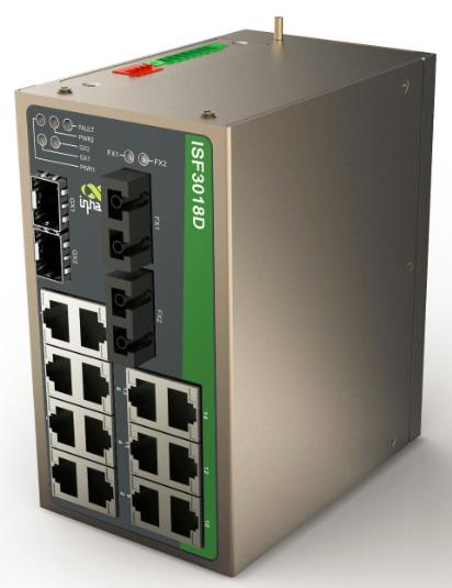 ISF3018D series products are of 18 ports DIN-rail ring-network type Industrial Ethernet Switch, especially designed for applications in the field of electric power, transportation, industrial control and in other severe industrial environment. It integrates high-standard wide-range temperature and voltage design, enterprise-class link-speed forwarding performance, strong cabinet, protected industrial circuit and other industrial features, is capable of plug and play, and can satisfy reliability requirement under severe industrial environment.
